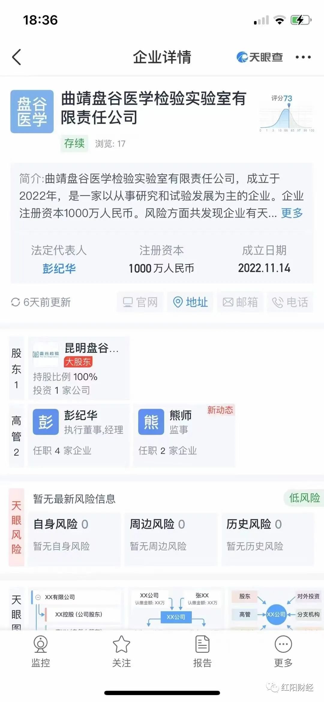 11月14日,曲靖盘古医学检验实验室有限责任公司成立。其注册资本1000万元,法定代表人为彭纪华。