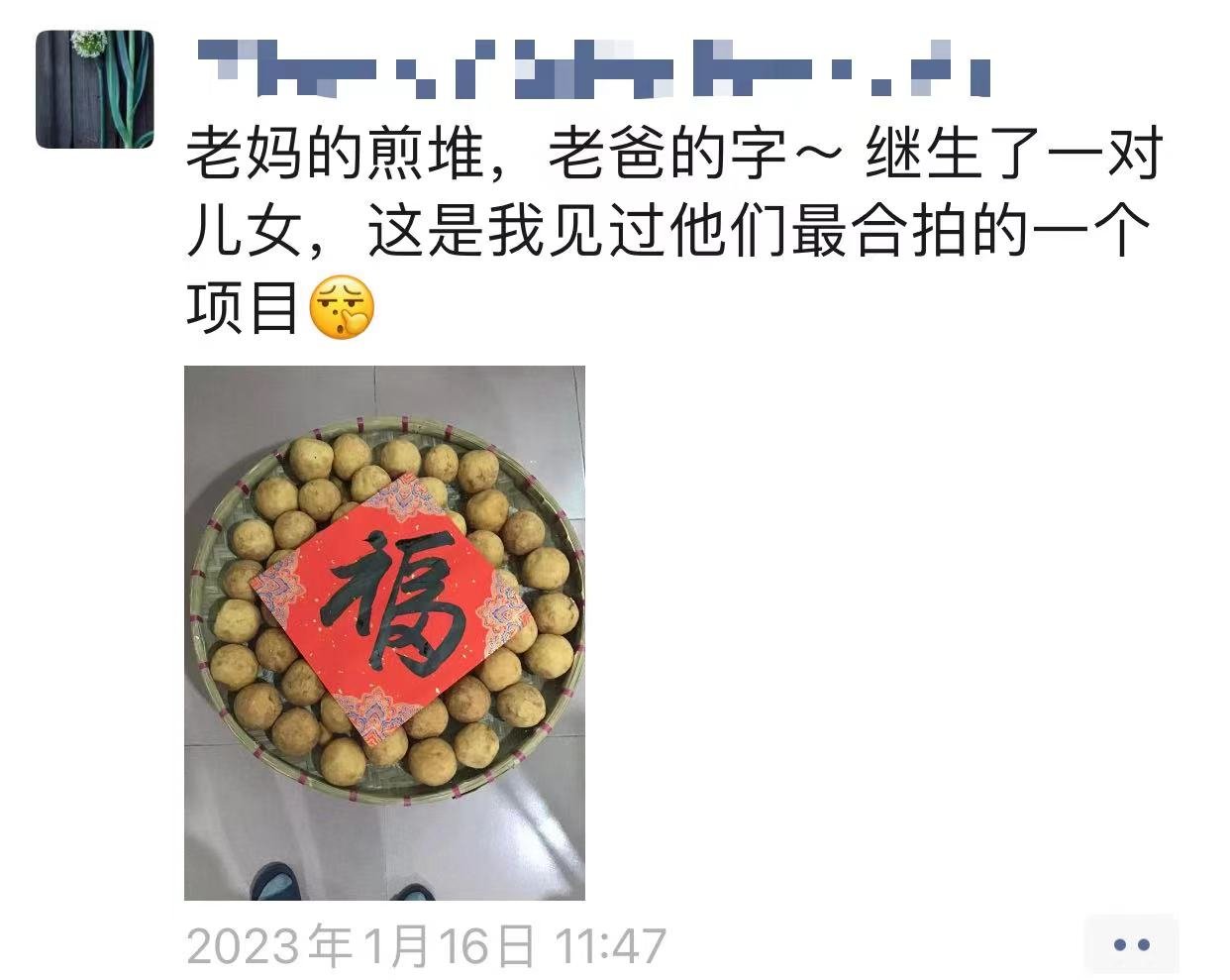 2019年春节,因为疫情影响,父亲决定暂时不去香港工作了,留在家中。“从小,我爸爸就很少回家,疫情后是我爸妈第一次每天都在一起生活,他们要重新适应对方。”林嘉佳说,父母有时会因为一点小事就拌嘴,但到了过年,两人又“和谐”起来,一起准备年货。“希望父母身体健康,恩恩爱爱”,林嘉佳许下新年愿望。