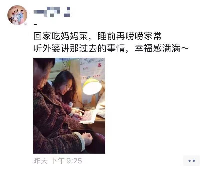 林巧把这温馨的一幕发了一条朋友圈,感叹“幸福感满满”。“小孩懂事贴心,老人们平安康健,就是我们做子女的最大的心愿了。”林巧说。