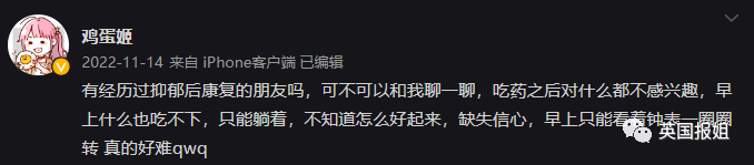 23岁生日后不久,她告诉大家,自己其实从10月中下旬就开始抑郁症复发,这次很严重。曾经喜欢的音乐、舞蹈再也提不起兴趣,每天都睡不着觉、吃不下饭。