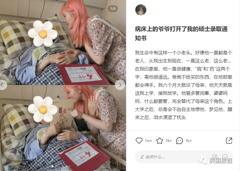 她给爷爷带去了自己的硕士录取通知书,希望自己能成为爷爷的骄傲。