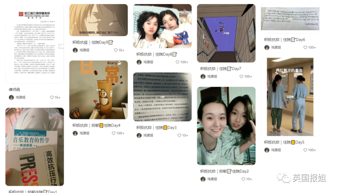 她试着治疗,试着给自己买饮料让自己开心起来,试着和病房里的其他女孩交朋友,一次次在帖子中鼓励自己不要认输。