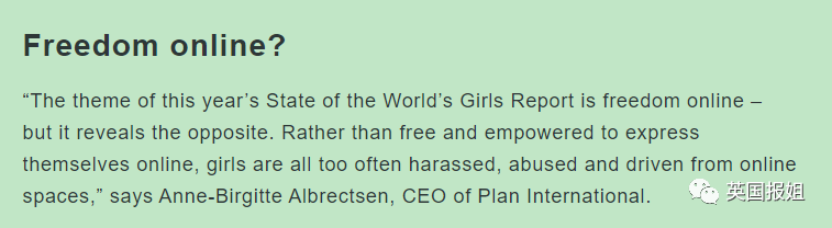 Plan International的报告显示,网暴者经常通过辱骂、讽刺、人肉女性,以降低她们的自信和自尊心,让女性更不敢在互联网上发声。