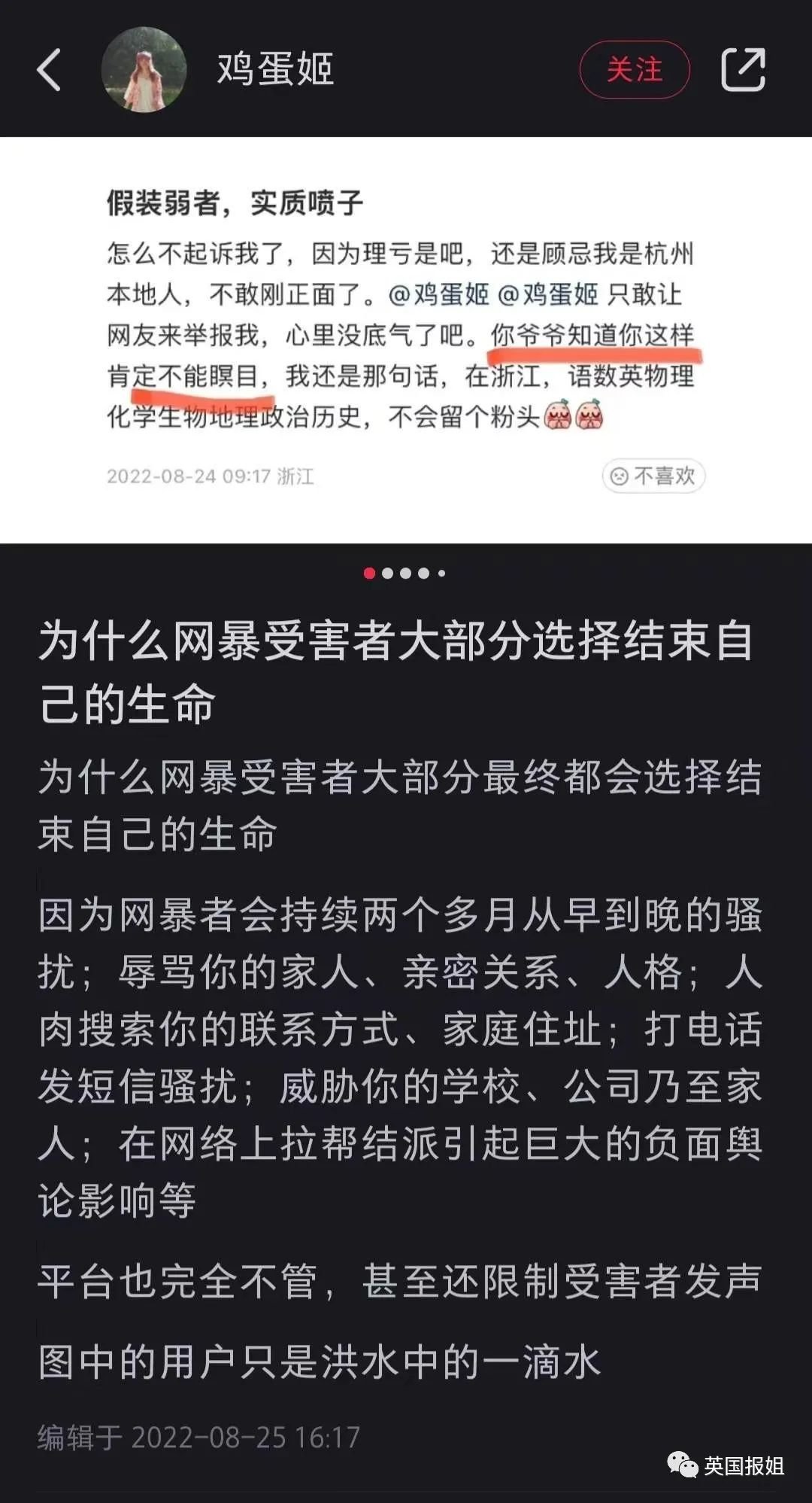 一些人还天天跑到她的私信和评论里荡妇羞辱她,在她的每一篇学习笔记下侮辱她的努力。