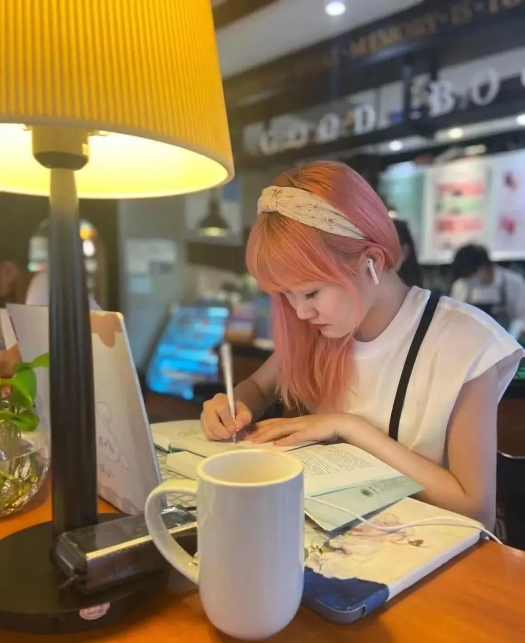 她真的很喜欢这个颜色,美美地拍完毕业照,连头像也换成了粉头发。