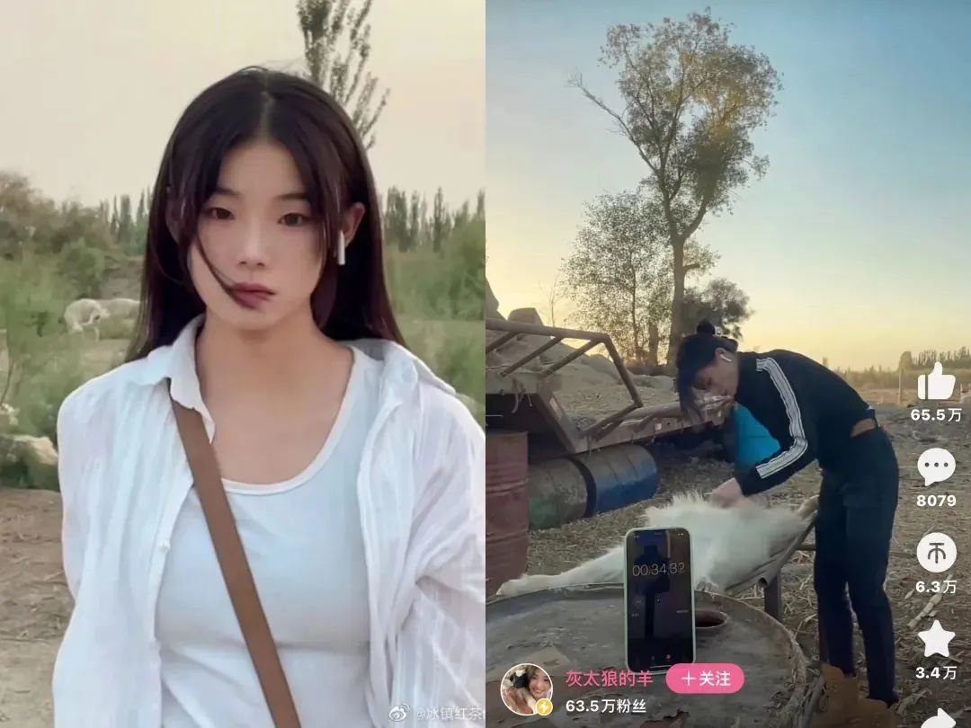 一年前,“灰太狼的羊”凭借一种独特的反差感在网上走红:白衣长发、清纯脸蛋,但是干起活来干净利落,很快就能把一只羊宰掉。前者吸引眼球,后者象征着某种坚韧和乡土田园的朴素意象。直到这次“田园少女”与“家暴受害者”的反差,又引燃另一波热度。