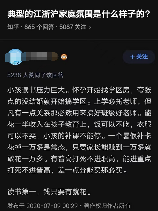 城市市民、中产阶级的孩子们,是咨询师们常遇到的群体,这其中往往混杂着现代性抑郁与后现代性抑郁。物质生活、营养上他们往往不差,缺的是睡眠时间和户外光照时间,这也是致郁的重要因素。总体参考知乎上贴里提到的作为我国样板的江浙沪家庭的氛围即可,当然也适用于非江浙沪的新市民、知识分子家庭。