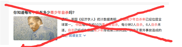 诚然,长期的心理健康危机并不是青少年自杀的唯一原因,青少年的冲动自杀也是广泛存在的(例如失恋)。此外,在不同的社会环境里,青少年获得自杀工具,以及在进行自杀尝试时受到的干预的机会是大相径庭的,会导致“自杀率”和“自杀意图”数据之间存在偏差。