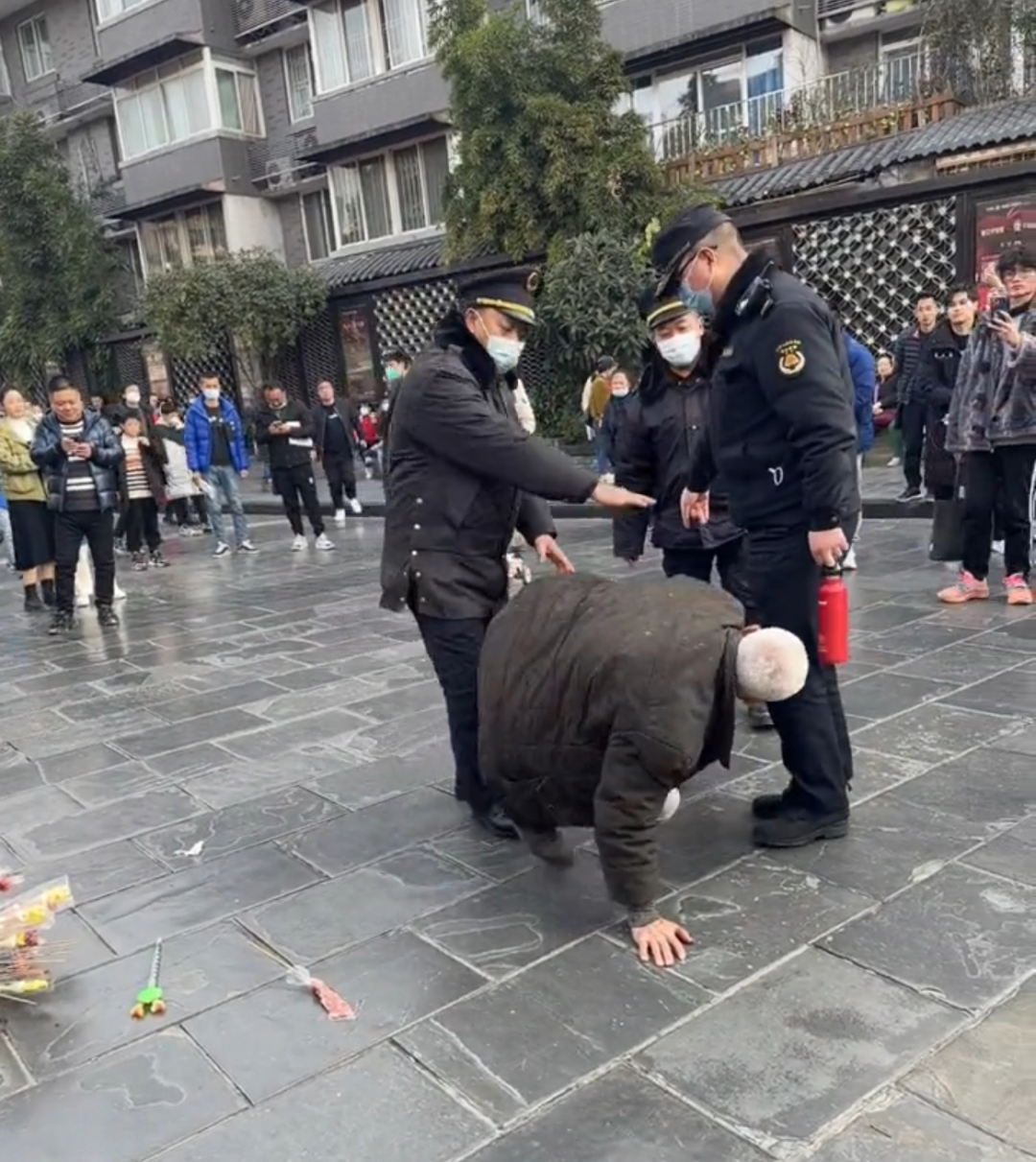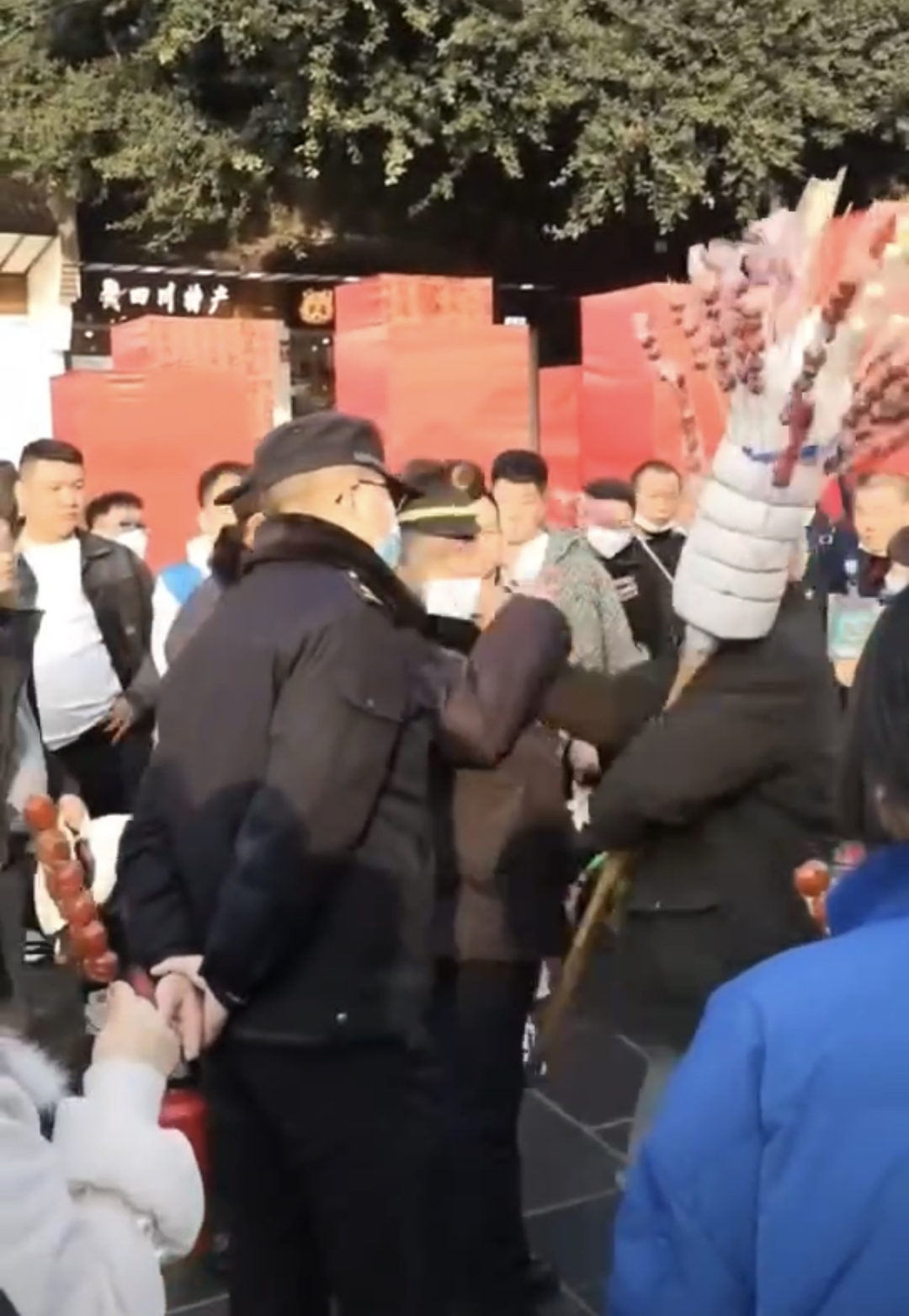 成都一景区保安殴打糖葫芦大爷 官方:老人先动手