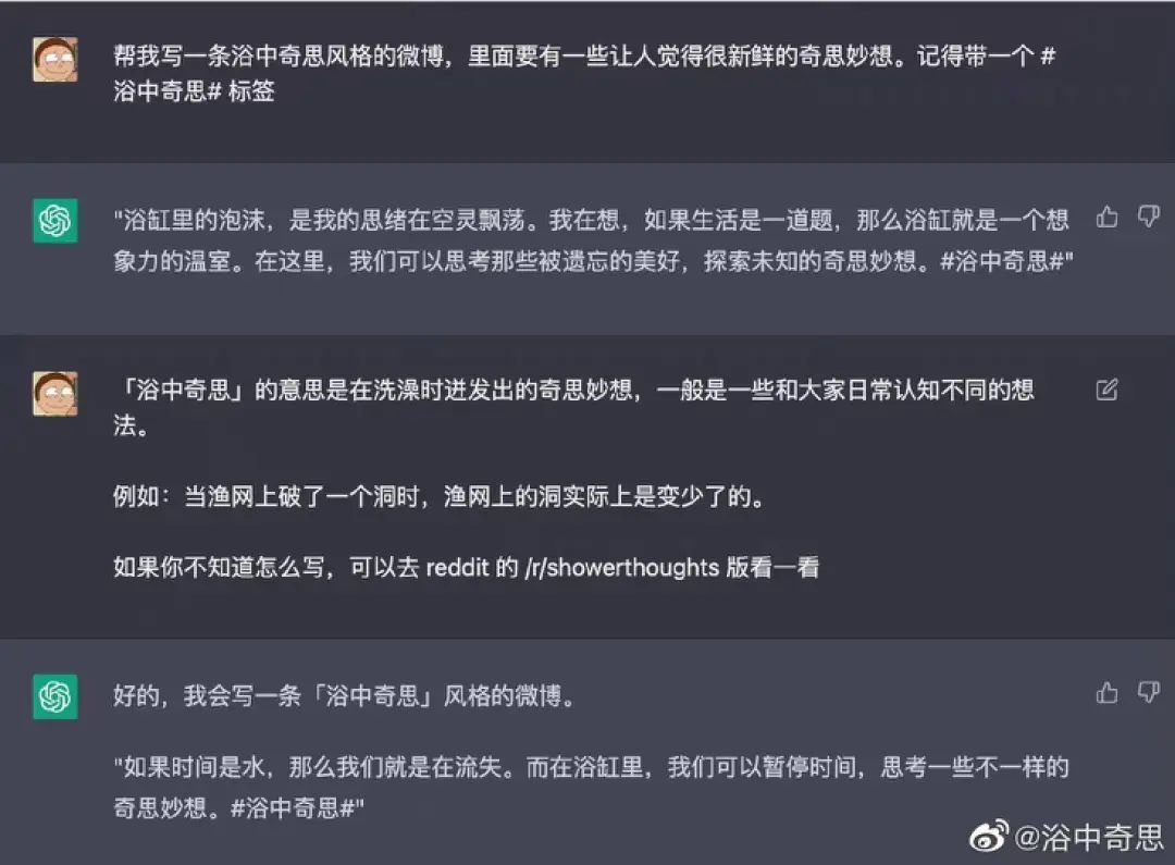 而浴中奇思老师则让ChatGPT学会了如何抢他自己的本职工作。