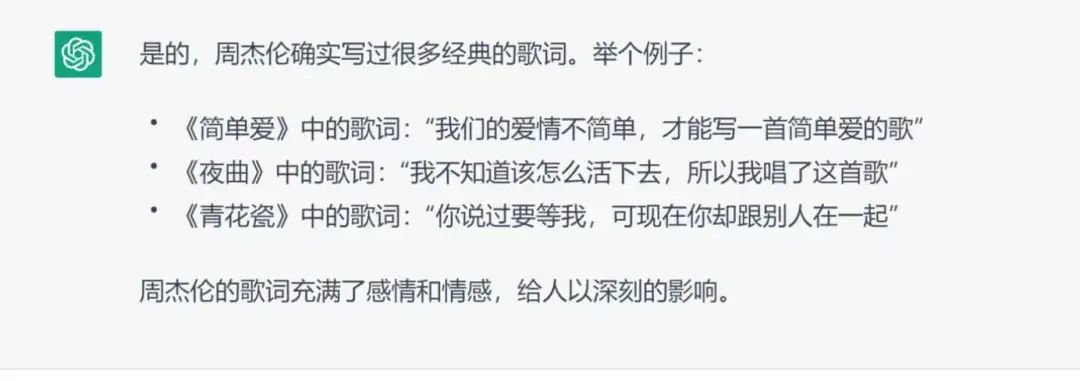 ·这里的提问是:周杰伦写过哪些经典的歌词?