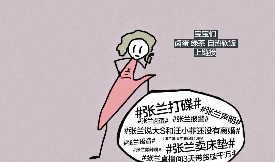 踩着具俊晔,对着空气打碟的兰姐,卖出了多少卤蛋多少酸辣粉;用牛仔裤缝了挎包往里面塞一瓶绿茶的兰姐,成了多少人心中的狠人;躺在床垫上卖软饭的兰姐,她的自传都成了近期热门的畅销书。