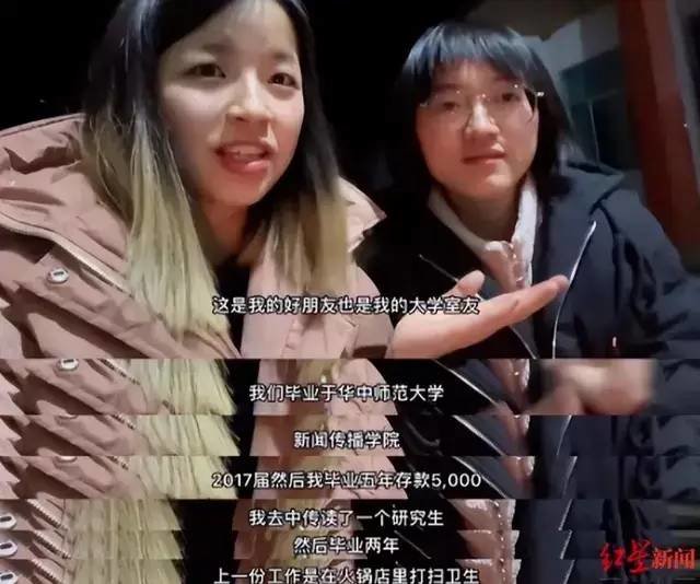 前两天,一则名为《我:毕业5年,存款5000元 她:中传硕士,火锅店保洁》的视频走红网络。
