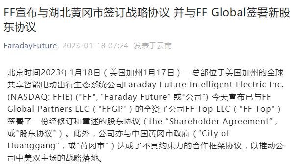 贾跃亭要回国了?FF宣布与湖北黄冈签订战略协议,计划将中国总部迁至黄冈