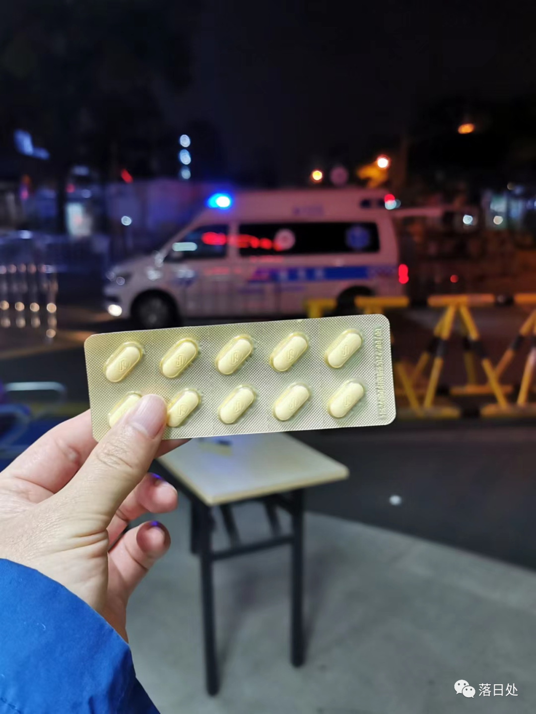 门外停着一辆救护车,一个新病人被推进来。护士问,啥情况,救护员说,血氧只有八十,护士问,能坐轮椅吗?家属答,不能。护士说,那就搬到那个床上吧。我看到我的车来了,匆忙拿着药拍了张照片。离开发热门诊,我有种被释放的感觉,甚至病情都有所减轻。