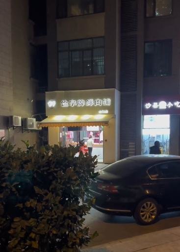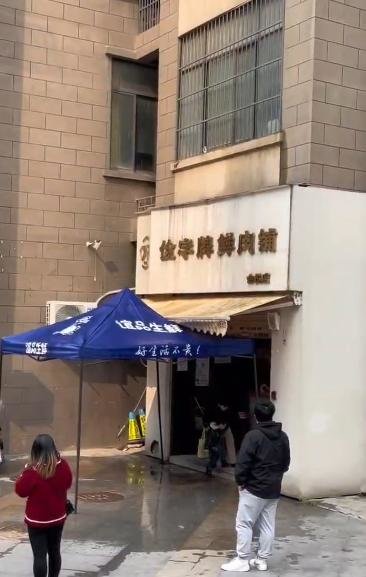 网传视频显示,一家名为“俭字牌鲜肉铺”的店铺开在某小区一楼,门外架着一个雨棚,不停有水从雨棚上落下,循环播放的录音广播似乎并不影响该肉铺营业。