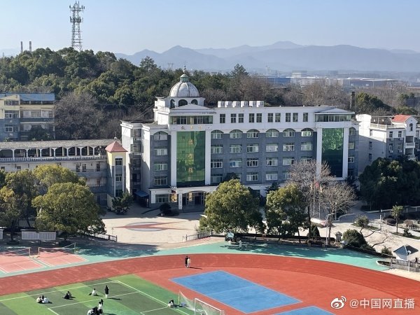 在山腰处,很容易看到校园内的建筑。学校紧贴金鸡山的围墙上面安装了多个监控和铁丝网,从二者的外观来看,装上的时间并不久。当有人靠近围墙时,监控会发出警告:“您已进入监控区域,请尽快离开。”