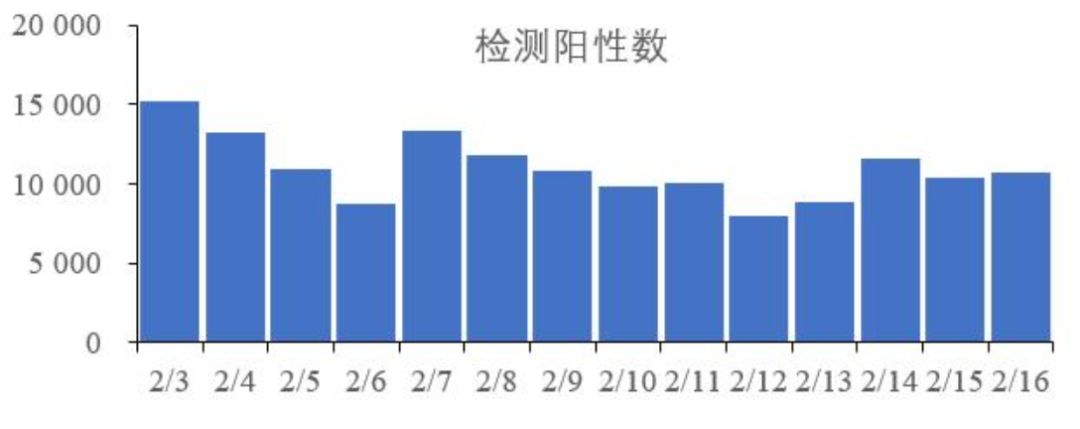 ▎图/据2月18日中疾控发布的最新《全国新型冠状病毒疫情情况》,2月16日,全国(不含港澳台)发热门诊(诊室)就诊人数有12.4万人次,在院新冠病毒感染者有2万人,其中重症患者56例。