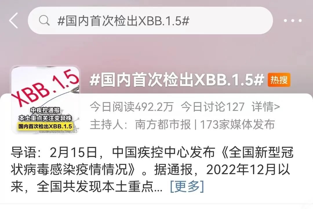 ▎图/据2月18日中疾控发布,2022年12月1日至2023年2月16日,全国共发现本土重点关注变异株15例,其中,1例XBB.1,1例XBB.1.5,1例BQ.1,5例BQ.1.1,1例BQ.1.1.17,4例BQ.1.2和2例BQ.1.8。