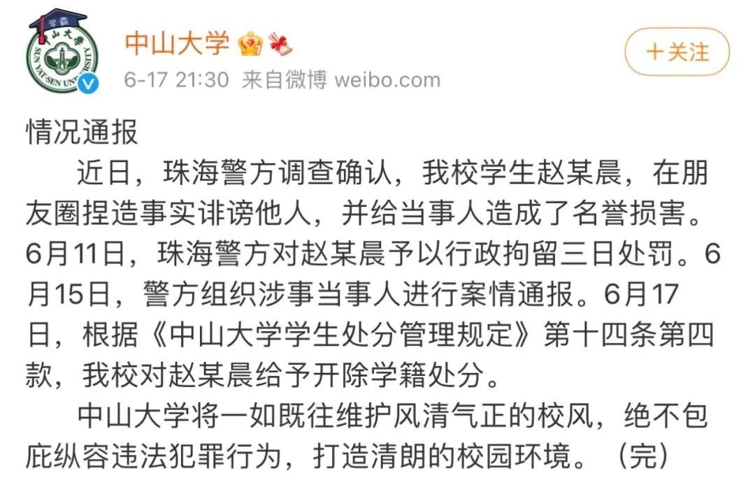 真相大白,赵某被学校开除,被警方拘留三天,永远留下案底,三名传谣者也被记了大过。