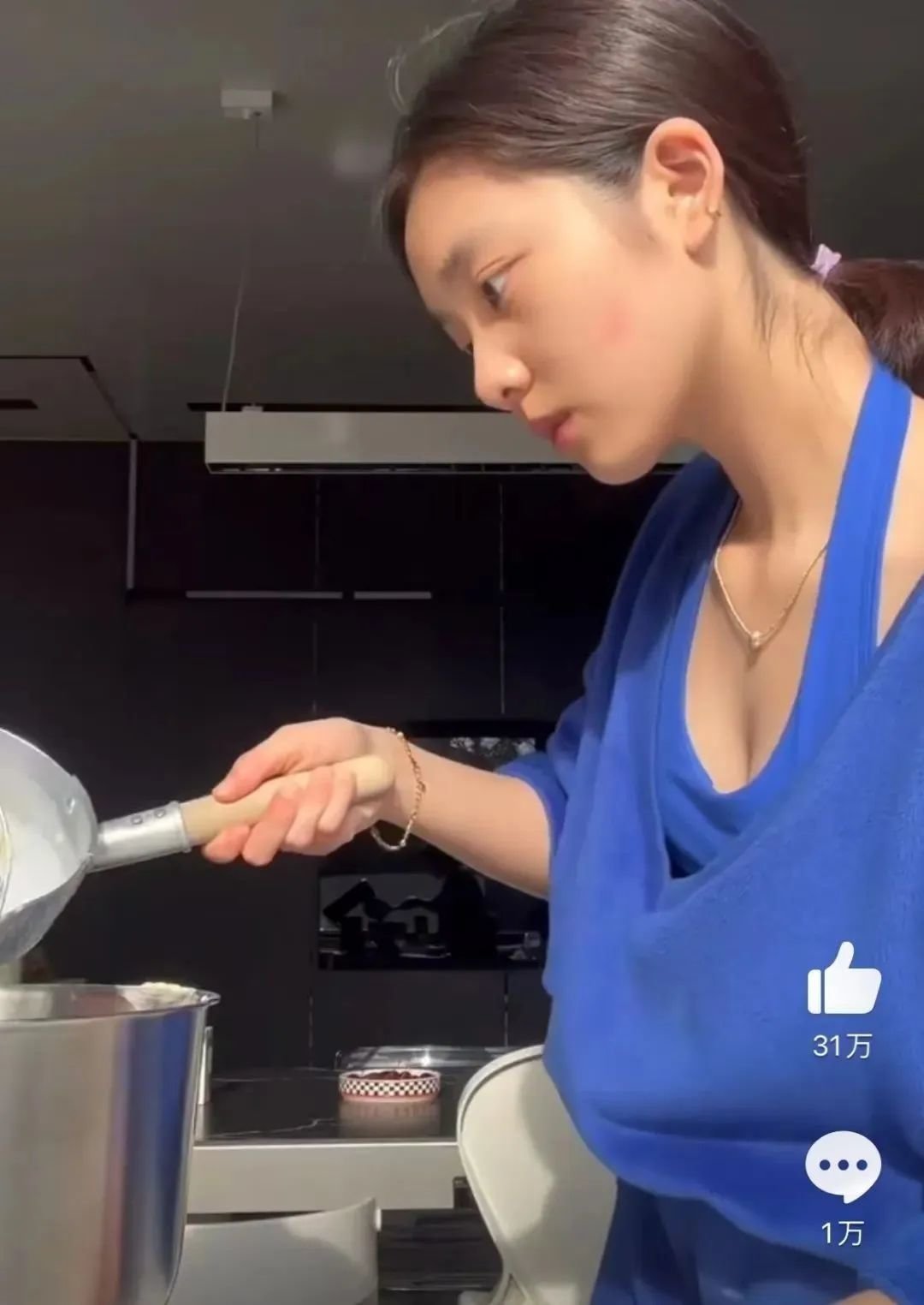 12月21日,孙莉在网络平台发布了16岁的黄多多做甜品的视频。