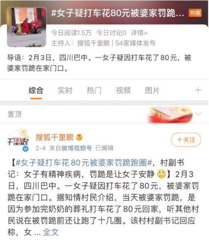 他把愤怒全部倾泻给了儿媳,“惩罚”她出去跑圈,紧接着又是罚跪,于是,就发生了文章开头的那一幕。