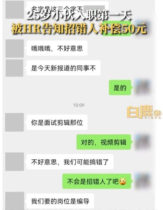 小伙入职1小时被HR告知招错人:名字对不上 补偿50元