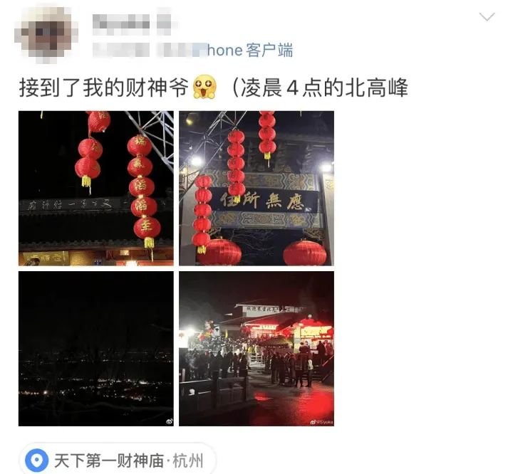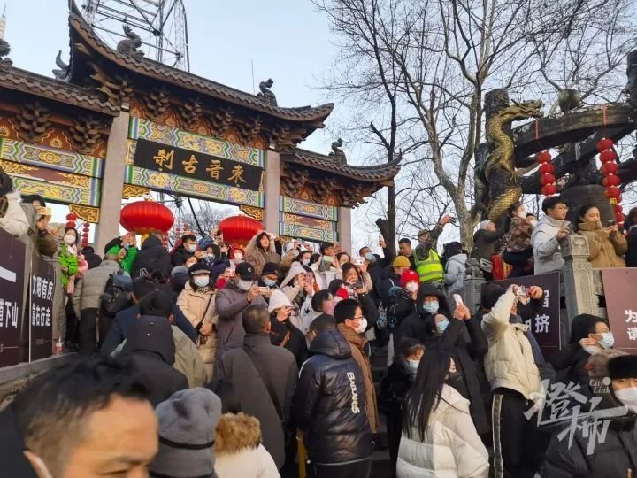 虽然今天早上气温在0℃以下,但丝毫阻挡不了大家迎财神的热情。天还没亮就已经有不少人上山“接财神”了。