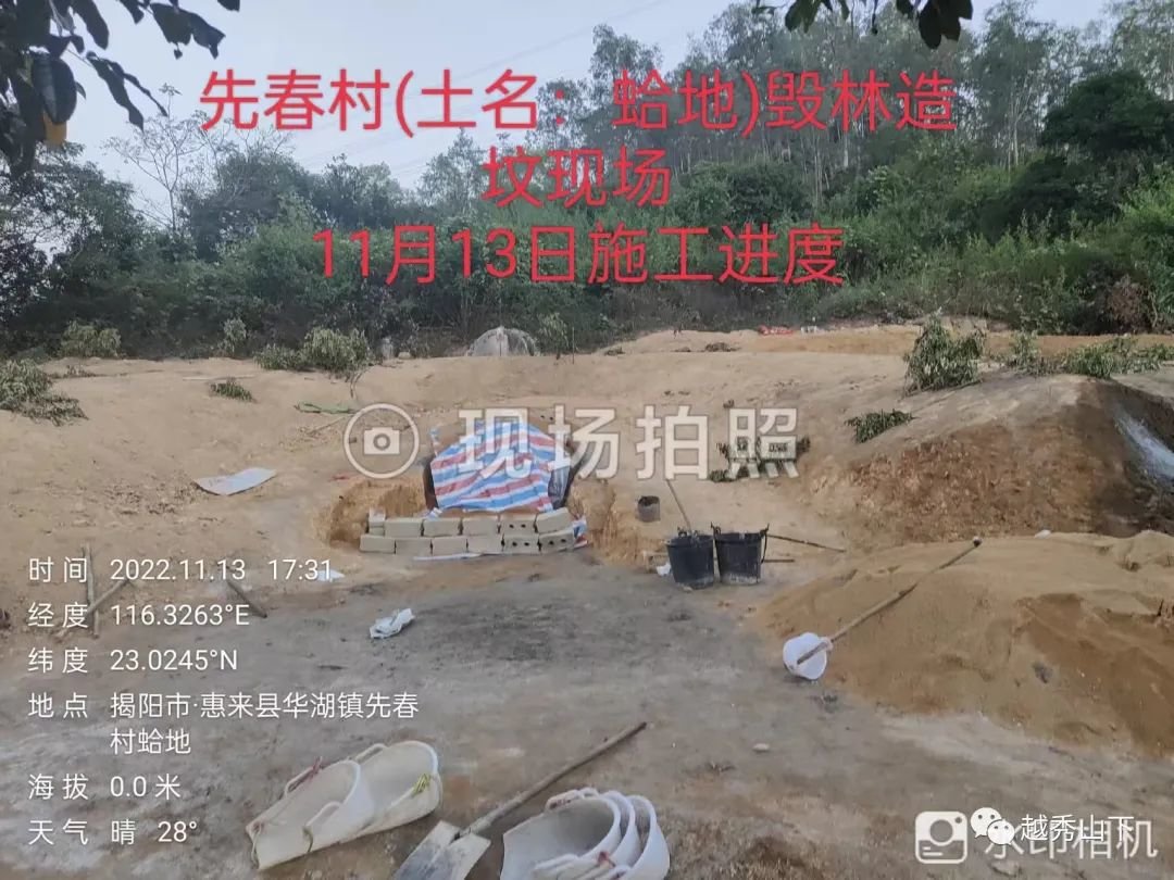 2022年8月23日,王则楚、孟浩等人到达了先春村造坟现场做了调研,本来想到惠来县政府与肖辉生县长当面沟通,刚好肖县长称自己到市里开会,委托了华湖镇委书记陈泽华开了一个座谈会。