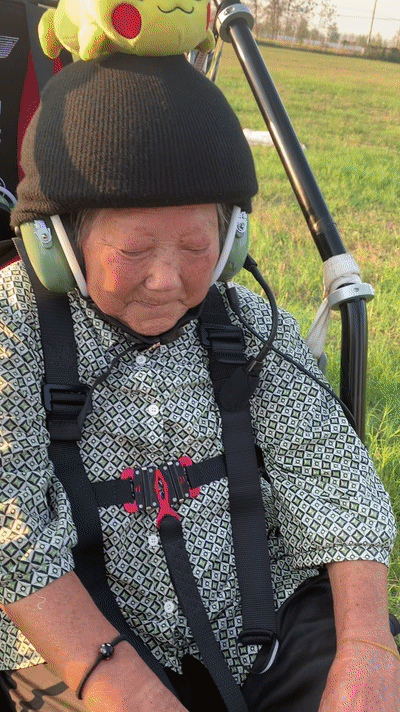 无独有偶,江苏淮安一位玩滑翔伞的八旬老奶奶也是让人直呼“震撼”。头戴卡通头盔,身着花衬衫,还开心地朝着镜头竖起剪刀手,老人的潇洒态度让许多年轻人都自愧不如。