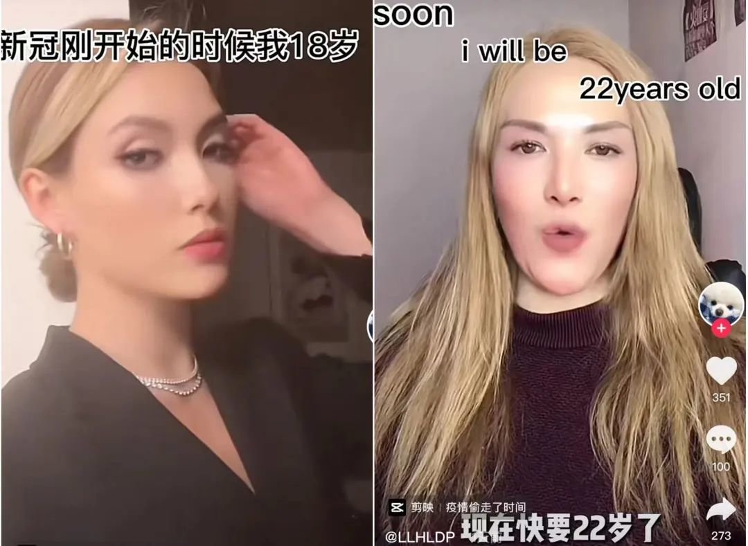 有喜欢在土味网红中寻找icon的抽象粉丝发现,娜娜的妆容与谷爱凌神似,因此剪辑出“三年后我就成了你”这样的梗视频,并因此生出“谷爱凌和娜娜加起来有三个国籍”这样的段子。这成了娜娜第一波破圈的开始。
