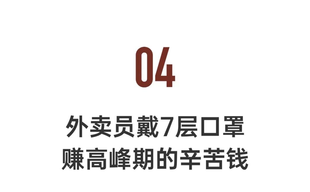 我自己也怕啊,没有N95,就戴7层口罩。但是18号左右,我还是感染了,发烧睡了一天,第二天就去跑单了,难受啊,全身发冷,咳嗽,没办法,就回来又休了一天。我们骑手普遍都这样,发烧了就休,干两天不行了,就再休一下这样的。