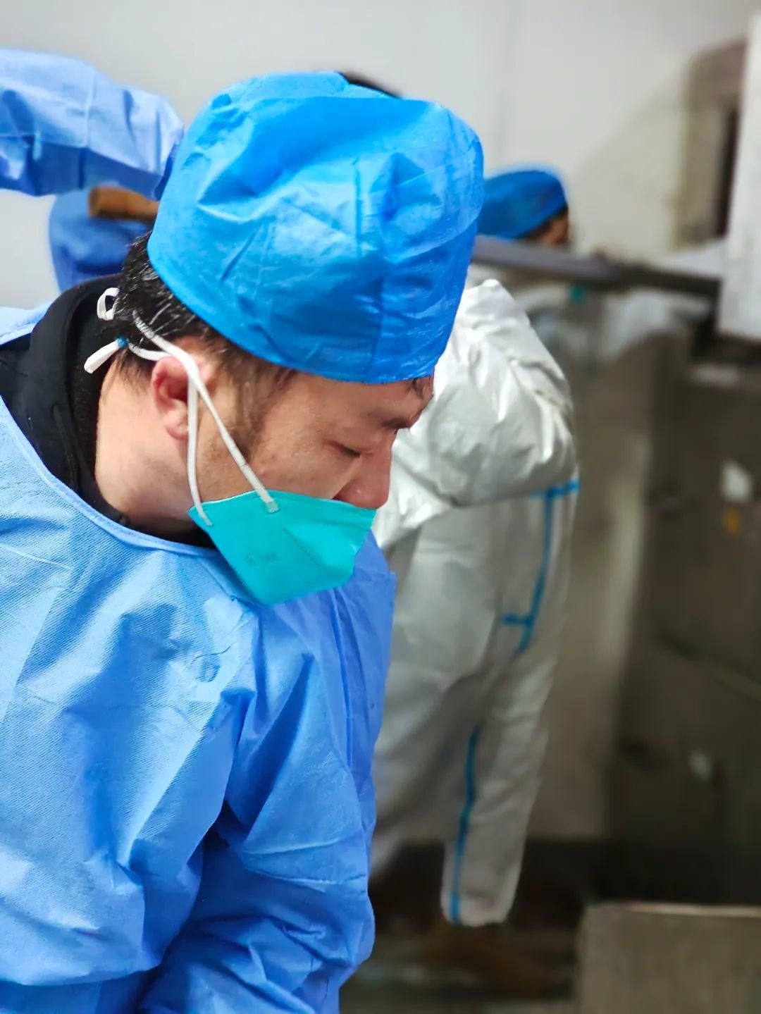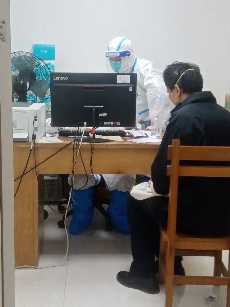 我是妇科医生,大概12月10号刚从手术台上下来,就被抽调到发热门诊支援。它是24小时的,4班倒,分为上午、下午、晚上、凌晨,每个班有2~3个医生和3~4个护士。我们都得穿防护服,是不能喝水、吃饭、上厕所的,一趟下来就是六七个小时。