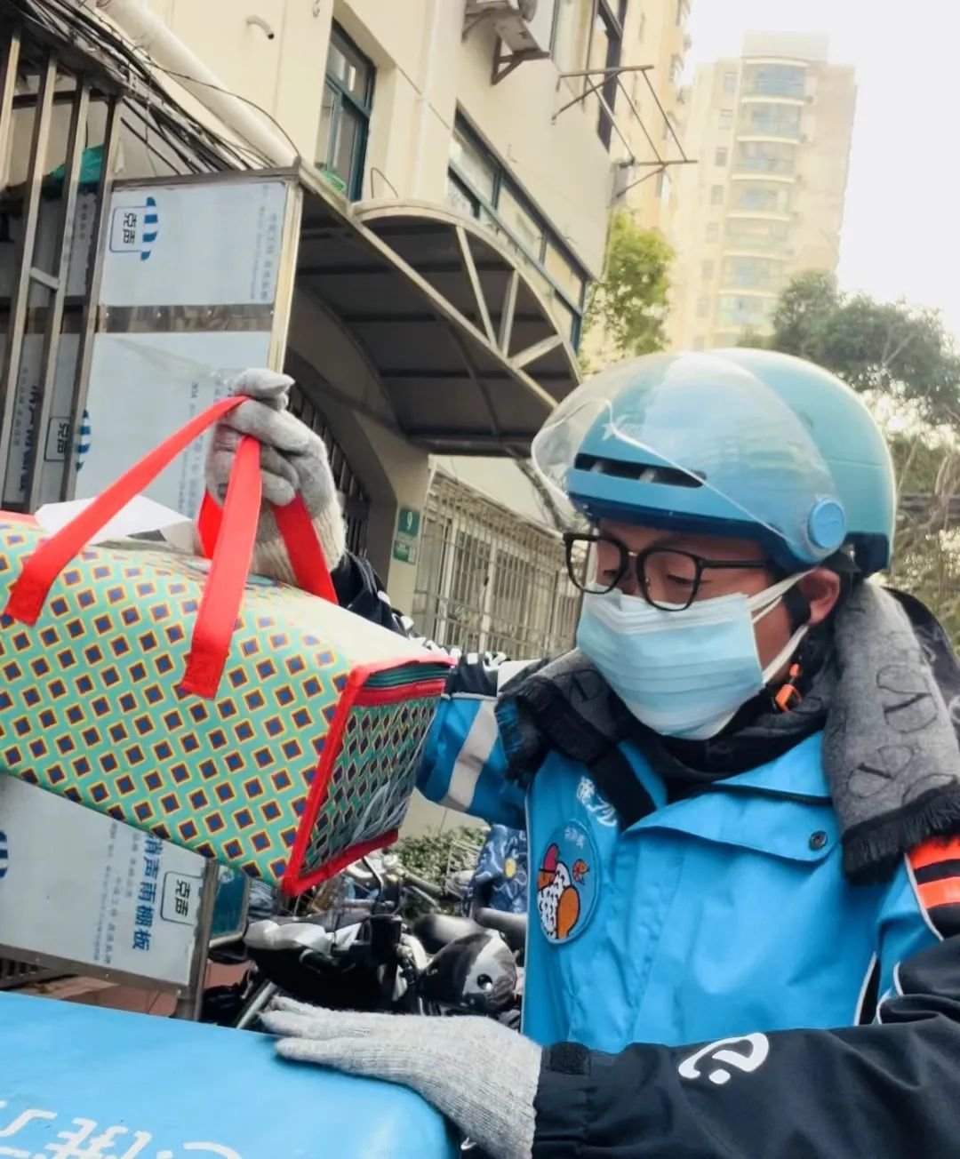 高峰期买药和买粥的居多,还有买口罩、酒精和菜的,有不少是子女给老人的订单,他们会写备注,我送到了之后也要给子女打电话报备一下。医院的订单也很多,里面人都挤不动,感觉现在医院是最繁忙的地方。