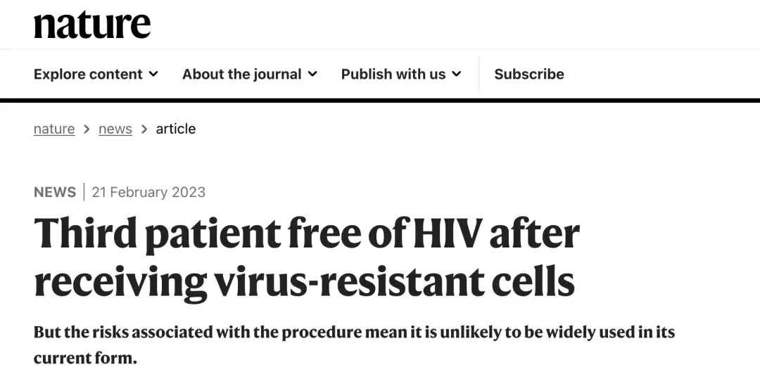 在此之前,被公认达到“治愈”程度的 “柏林病人”“伦敦病人”,也是通过接受带有CCR5Δ32基因突变的骨髓干细胞移植治疗癌症后,体内的艾滋病病毒得到了长期缓解。