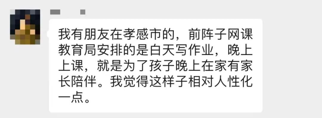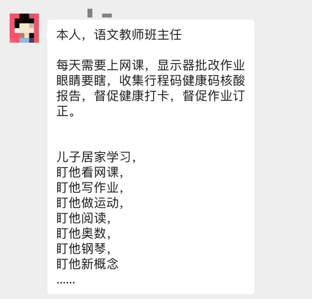 也希望以后专家们再“建议”的时候,能否把家长的精神状况也作为考虑因素。毕竟网课已经这么久了,也该关注家长的精神健康了吧。