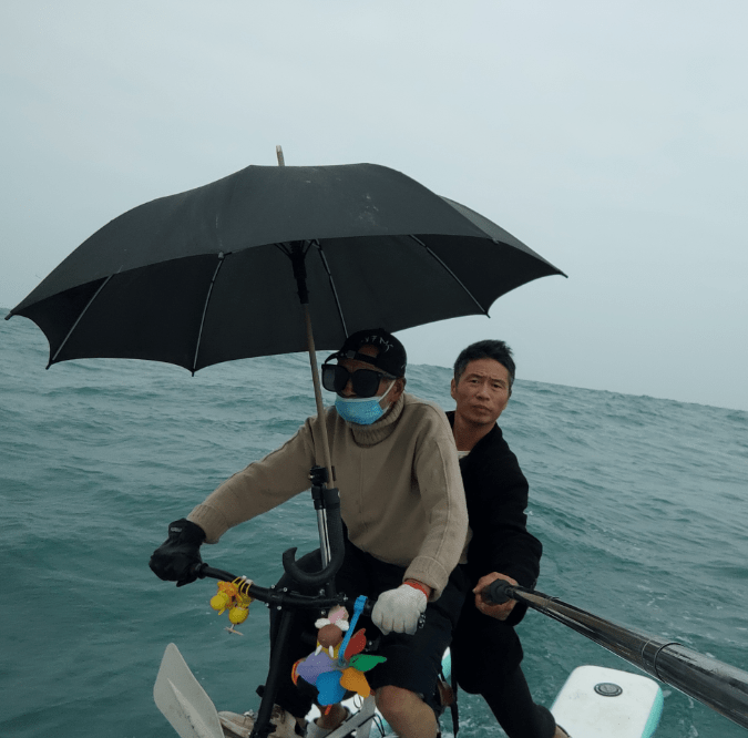 “就是一个很简单的骑行工具,在海上要面对永不休止的浪、对未知大海的恐惧,生命时刻面临威胁的感觉达到了顶峰,两个人当时都只有一个想法——活下来。”杨更身说,骑行过程中,最难的是中途换人,因为骑行不能中断,一旦中断,水上自行车很容易被浪花拍打后顺着流水飘荡。