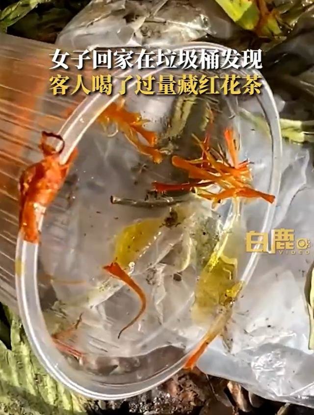 近日,湖北孝感的钱女士回家后发现,垃圾桶里的一次性杯子中竟有四五十根藏红花,以为是妈妈把藏红花当茶叶泡给客人喝了,顿时感到十分震惊。