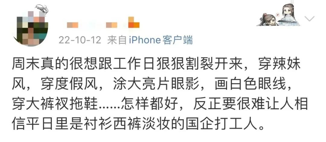 打工人他们往好处想了想,不管怎样,有工作穿搭要求,至少说明还有工作。