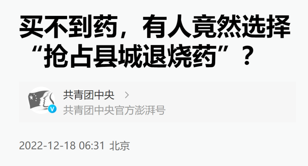 前段时间,小红书上到偏远县城囤退烧药的消息,刺痛了许多人。大城市里的人,利用信息差和感染的时间差,掏空了小县城乃至乡村的药房。