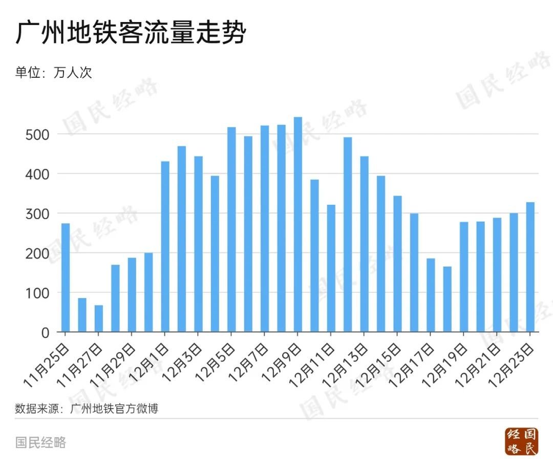一个月前,广州正处在最严封控状态,每日新增感染一度逼近万人,地铁客流量连续多日跌破200万大关。