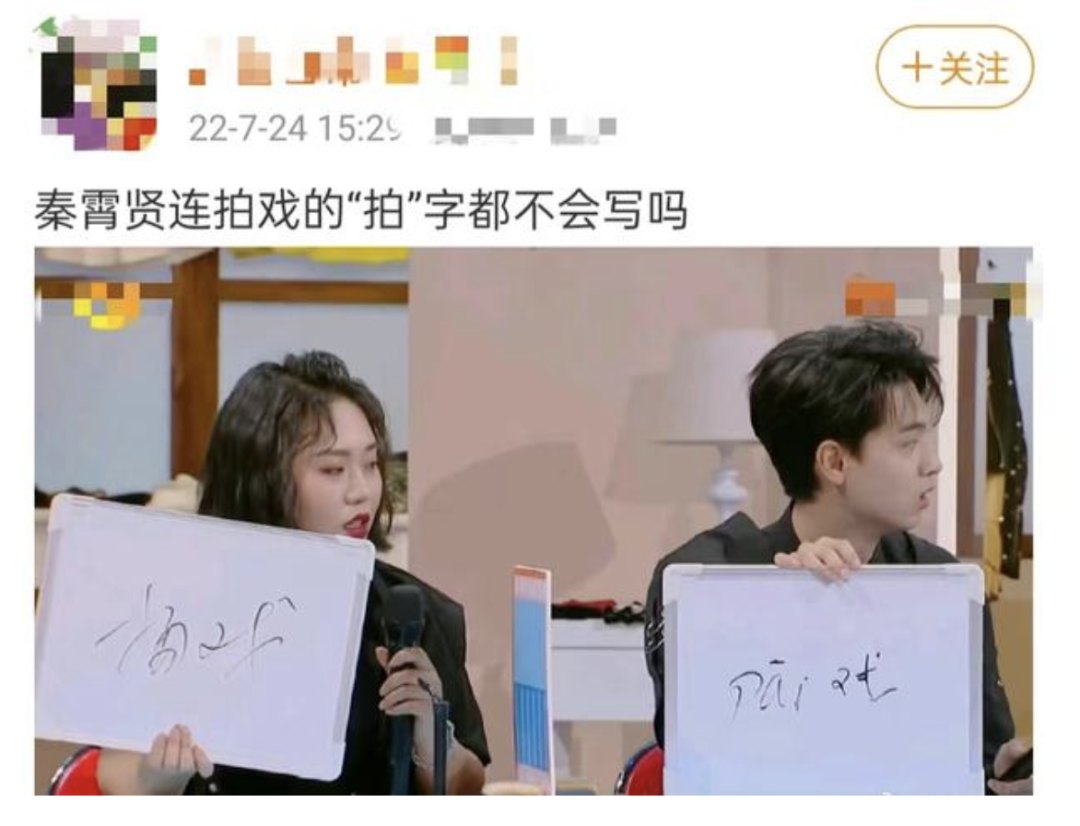 在综艺《你好星期六》中,德云社相声演员秦霄贤连拍戏的“拍”字都不会写,只能用拼音代替。