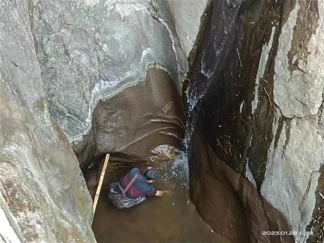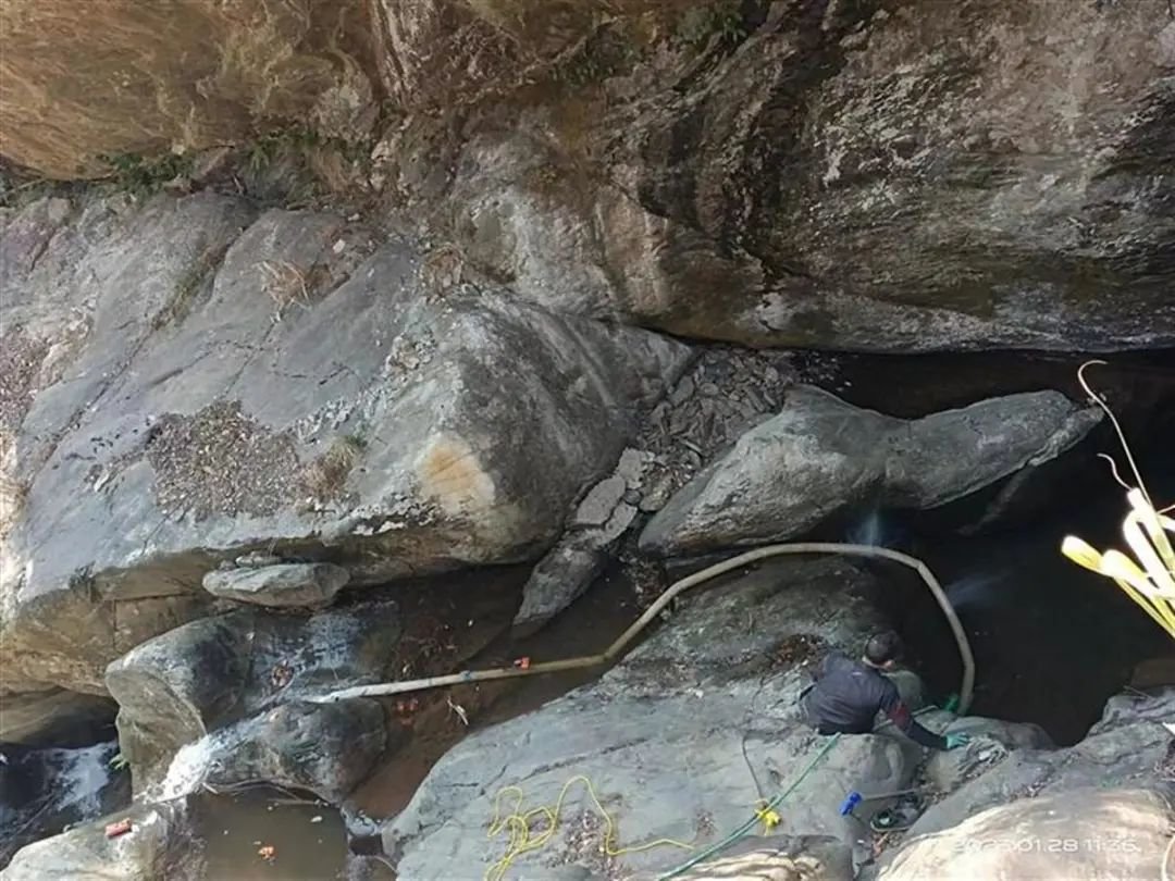 通过现场观察发现,手机掉入的峡谷有700多米深,里面有积水,加之气温较低,人下水的办法行不通,一番商量后决定抽水进行打捞。