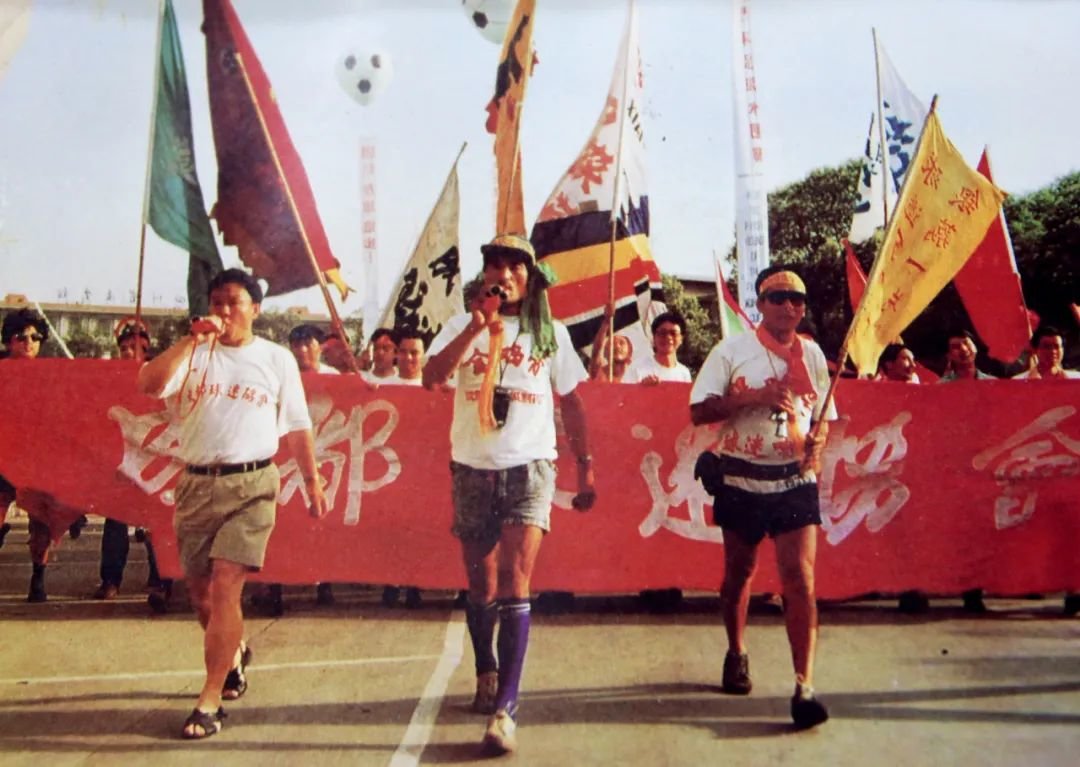1993年6月,国足无缘世界杯,在成都的第二阶段比赛沦为“陪太子读书”。赛前罗西(中) 和众多球迷为国足加油。图/受访者提供