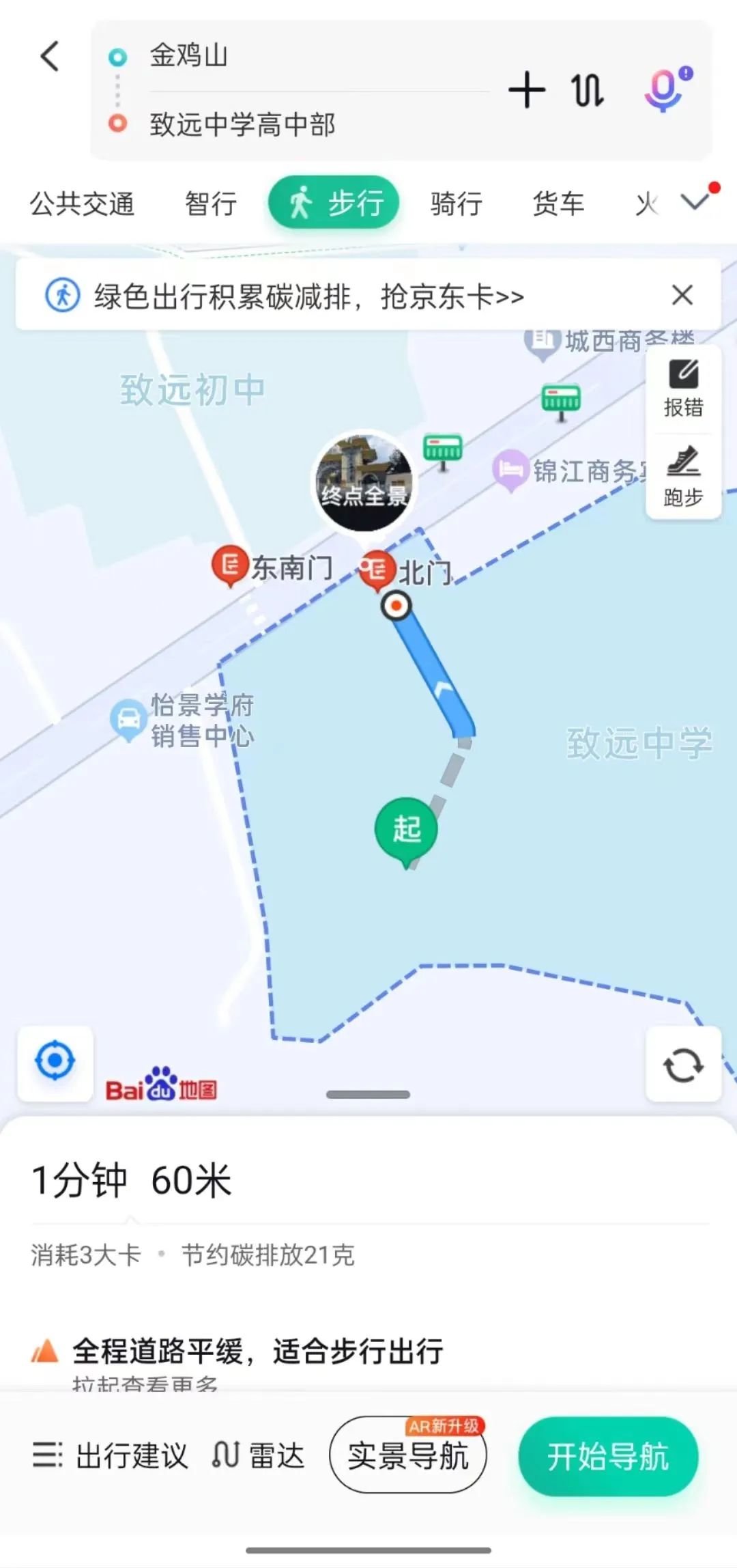 大皖新闻记者从百度地图上进行搜索看到,金鸡山位于致远中学南侧,致远中学北门与金鸡山直线距离仅约60米。