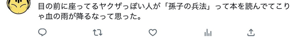 “我面前一看就是社会人的大哥,正在读《孙子兵法》,感觉下一秒就要掀起腥风血雨了!”