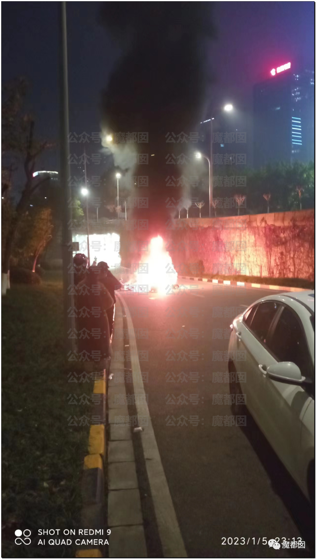 故事现场是相当惨烈,燃起熊熊大火,能引发这么大火灾的基本上燃油箱肯定撞破了,撞击力度肯定不小: