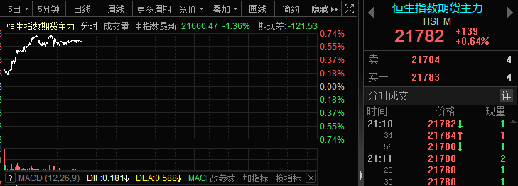恒指期货反弹力度更大一些。这个指数在晚上十点半之后非常容易受到纳斯达克中国金龙指数的影响。若金龙指数表现同样强势,则恒指期货反弹力度会更大。反之,则会演绎跳水行情。