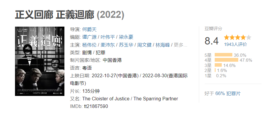 去年(2022年)年底于香港上映的影片《正义回廊》,不知道大家伙儿找到资源没有。