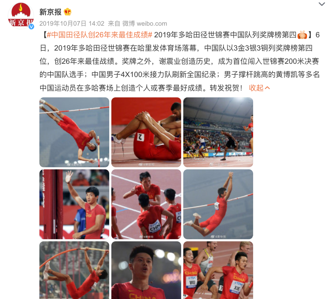 某届田径世锦赛,中国队拿下3金3银3铜,创下26年来最佳战绩。